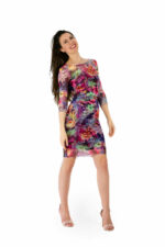 Gloria ist ein gefüttertes Meshkleid. Mesh ist ein transparentes Tüllmaterial, welches sich ganz zart auf die Haut legt. Durch die Teilfütterung sind Ärmel und Dekolleté leicht durchsichtig und kommen besonders zur Geltung. Abgerundet werden die Abschlüsse durch einen verspielten Rollsaum und greift nocheinmal die Zartheit des Materials auf. Das Kleid hat einen U-Boot Ausschnitt, einen 3/4 Arm und ist knieumspielend.