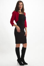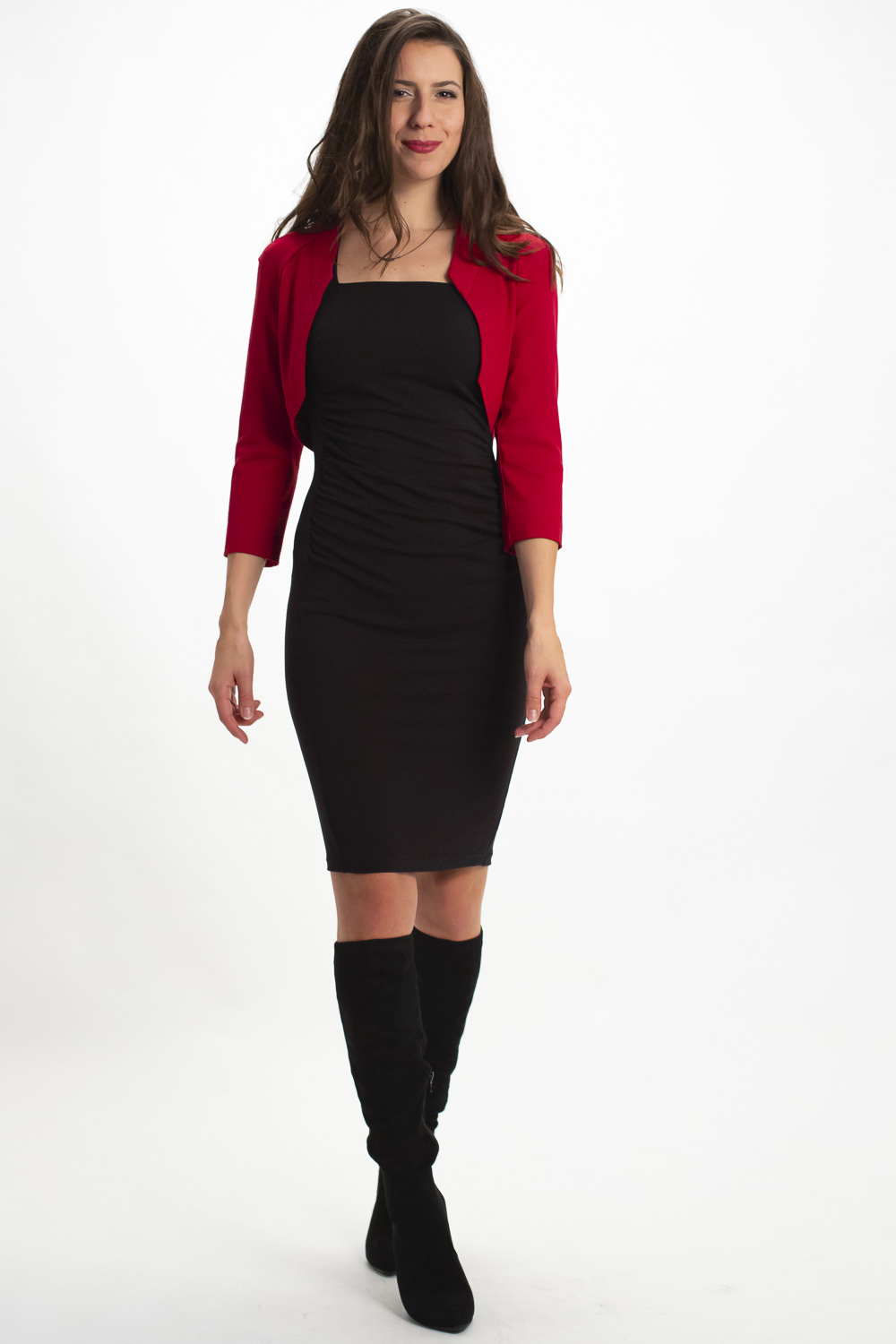 Der Bolero NELE ist wunderbar mit schmalen Jersey-Kleidern kombinierbar und kreiert durch seine schlichte Eleganz ein stilvolles Outfit.