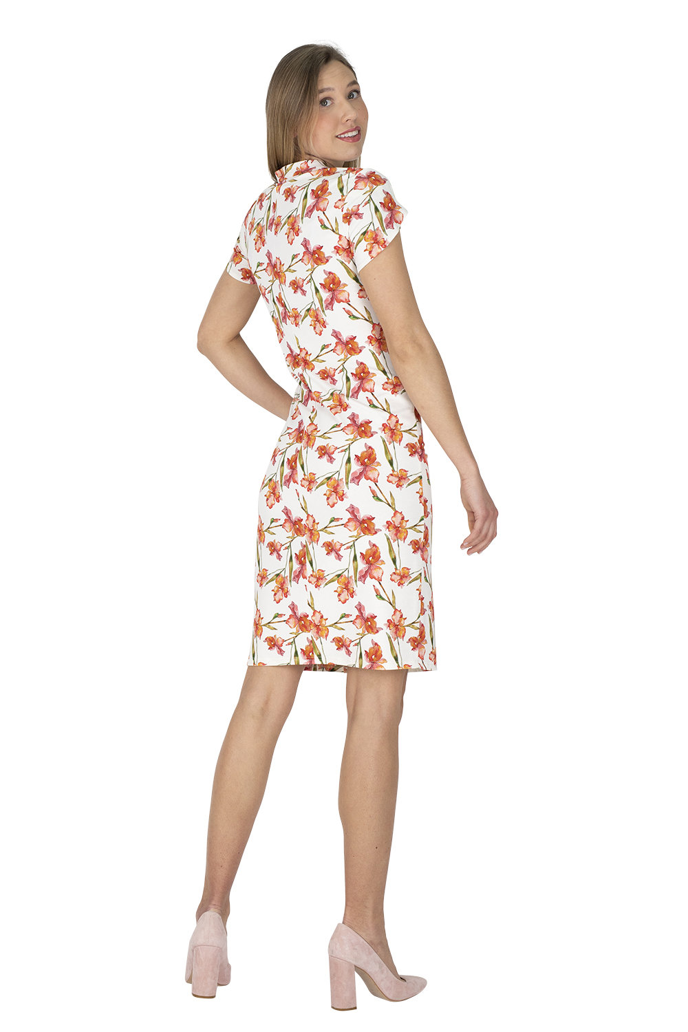 Es ist figurbetont aber nicht hauteng. Die Raffung im Vorderteil kaschiert gekonnt die eine oder andere weiblichen Rundung. Der Rock ist schmal und hat vorne einen Schlitz.